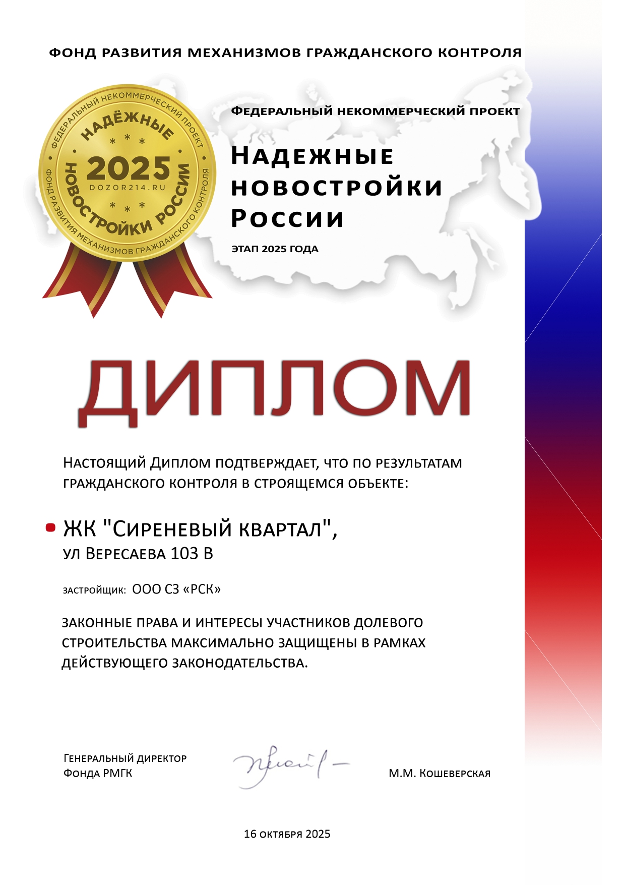 ООО «РСК» занимается строительством качественного и доступного жилья в экологически чистом районе города с развитой инфраструктурой. ЖК «Сиреневый квартал» состоит из 14 секций класса "комфорт +"